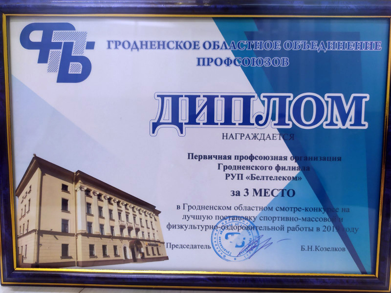 Благодаря ежедневному кропотливому труду первичной профсоюзной организации филиала Гродненский филиал занял третье место в областном смотре-конкурсе на лучшую постановку спортивно-массовой и физкультурно-оздоровительной работы в 2019 году.