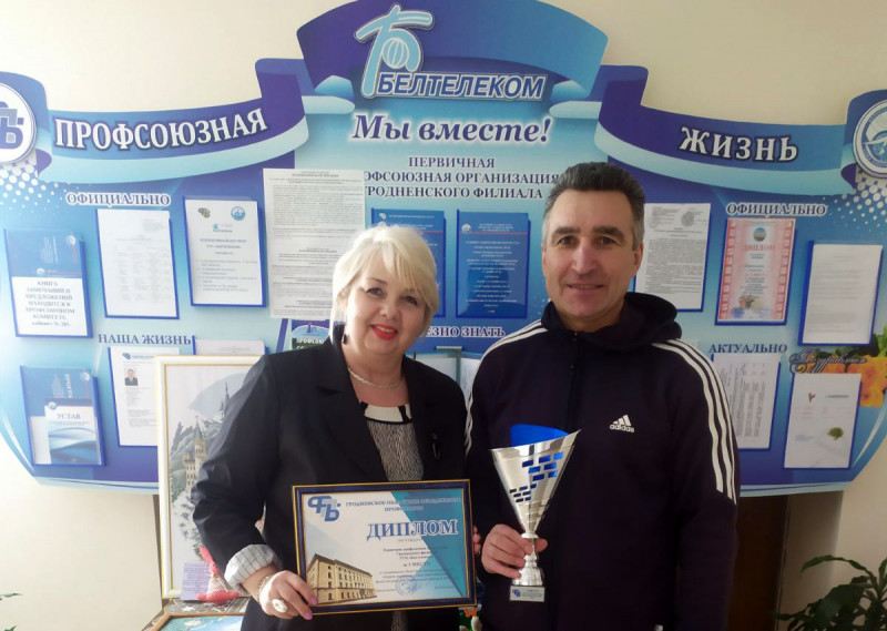 На заседании президиума областного объединения - диплом, кубок и поздравления от председателя Гродненского областного объединения профсоюзов Борисом Козелковым получила председатель первичной профсоюзной организации филиала Александра Беловолова.