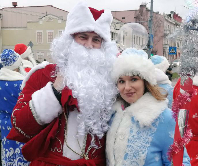Самым главным атрибутом Новогодних праздников – это, конечно, ёлка. Есть разные легенды о том, как и когда, появились новогодние ёлки. Несомненно, и то, что до неё символами различных праздников бывали разные деверья. Одна из легенд прямо говорит об этом: по ней святой Бонифаций срубил дуб Одина, чтобы показать бессилие германских богов, и указал на маленькую ёлочку, которая не сломилась под ветвями дуба, и вечнозелёными ветвями символизировала бессмертие. Также символами новогодних праздников являются Дед Мороз и Снегурочка! Именно в эти дни уже начинаются новогодние праздники. В городе можно увидеть сказочные персонажи, но встретить сразу около 500 Дедов Морозов и Снегурочек можно только на новогоднем шествие этих сказочных персонажей. 17 декабря в Гродно состоялся парад Дедов Морозов и Снегурочек от предприятий и организаций города. Гродненский филиал также принимал участие в данном параде. Неизменными новогодними символами стали сотрудники Гродненского зонального узла электросвязи – Дед Мороз (Павел Гедройц), Снегурочка (Екатерина Русакович). Вместе со своими «новогодними коллегами» они зажгли огни на главной ёлке областного центра и включили новогоднее настроение гродненцам и гостям города. Новогодние персонажи гуляли по центру города и угощали детей сладостями в обмен на стихотворения. На сцене проходил концерт, на площади работала Рождественская ярмарка, где можно было купить сувениры и угощения. И еще раз можно сказать, что Новый Год к нам мчится…