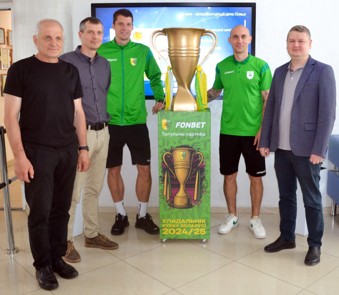 В главный офис организации трофей доставили наш полузащитник Михаил Козлов и автор одного из трёх победных голов в финале кубка Сергей Пушняков.