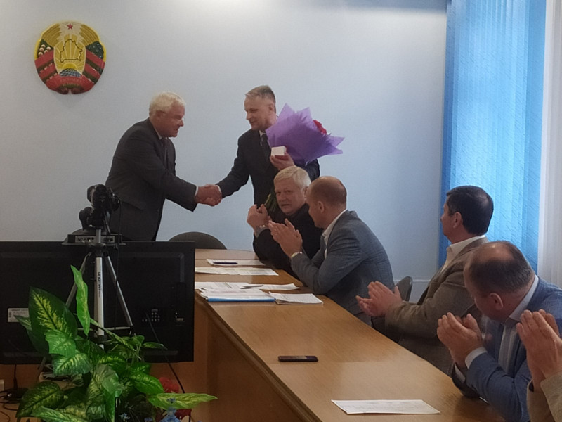 Директор Гродненского филиала РУП "Белтелеком" Виктор Владимирович Матвеев зачитал Приказ министра связи и информатизации Республики Беларусь Константина Константиновича Шульгана о присвоении звания и награждении медалью "Ганаровы работнiк сувязi Беларусi" начальника Сморгонского ЗУЭС Гродненского филиала РУП "Белтелеком" Никадона Александра Станиславовича. Вручая награду, Виктор Владимирович Матвеев поблагодарил за внесённый вклад в развитие нашего предприятия и пожелал успехов в труде.