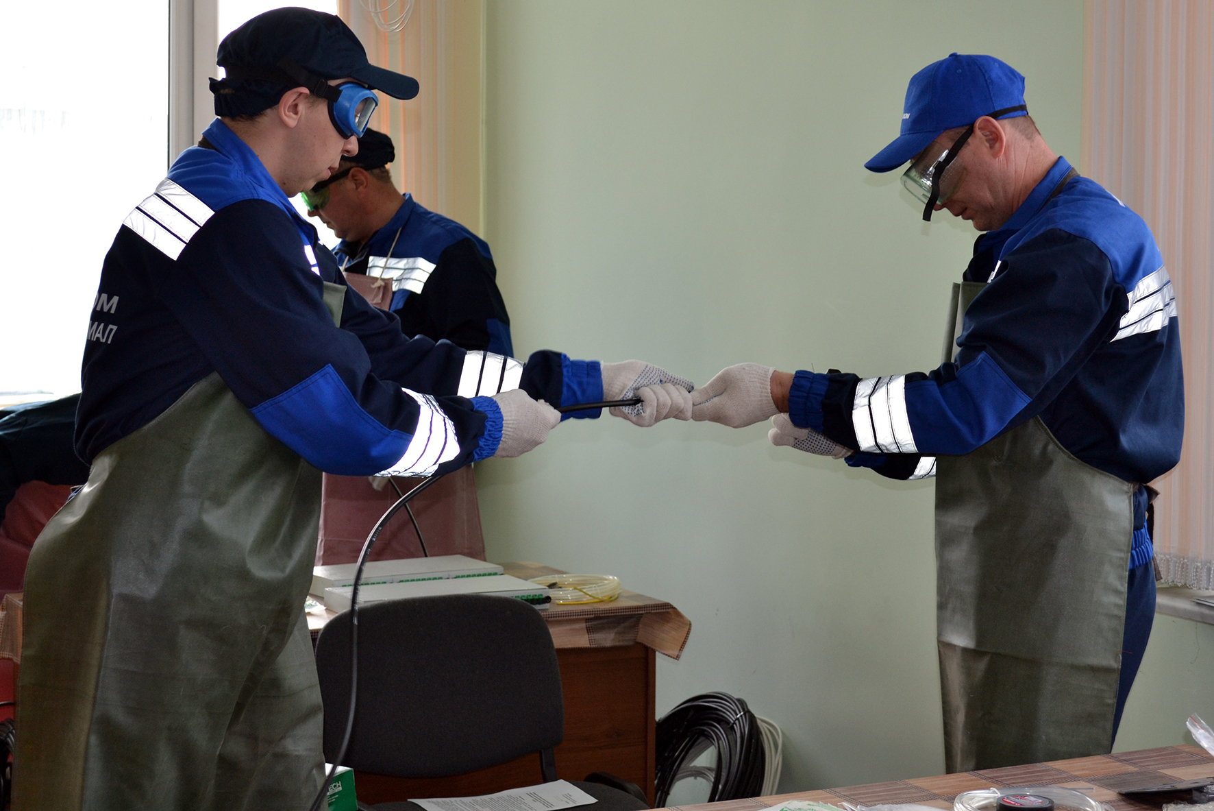 В перчатках, очках и в фартуках они «колдовали» над полноценной постройкой модели волоконно-оптических линий связи.