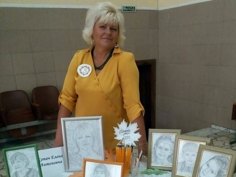 В конкурсе приняла участие - Елена Антоновна Копач, которая работала в Мостовском участке электросвязи, а ныне она является председателем ветеранской организации данного участка электросвязи. Активная, креативная, талантливая и просто - хорошая бабушка. Поддержать Елену Антоновну пришли друзья, знакомые и коллеги по работе. Елена Антоновна представила на конкурс свои работы - замечательные портреты членов своей семьи, выполненные карандашом. По итогам конкурса Елена Антоновна стала обладательницей титула в номинации «Самая креативная».