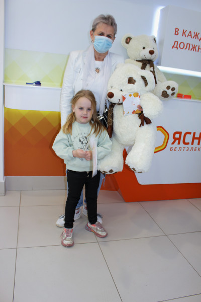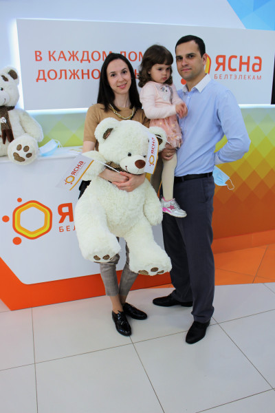 По доброй традиции компания поздравила девочек с именем Ясна, родившихся после 15 апреля 2016г. Семей, в которых растут тезки бренда в г.Минске всего 7. Яснам вручили красивых плюшевых медведей, которых девочки не выпускали из рук на протяжении всего праздника.