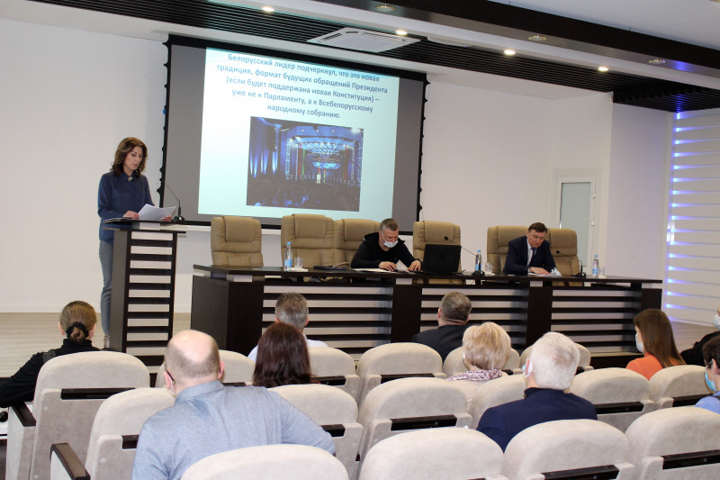 Тема выступления: «Ключевые аспекты послания Президента Республики Беларусь А.Г.Лукашенко белорусскому народу и национальному собранию.