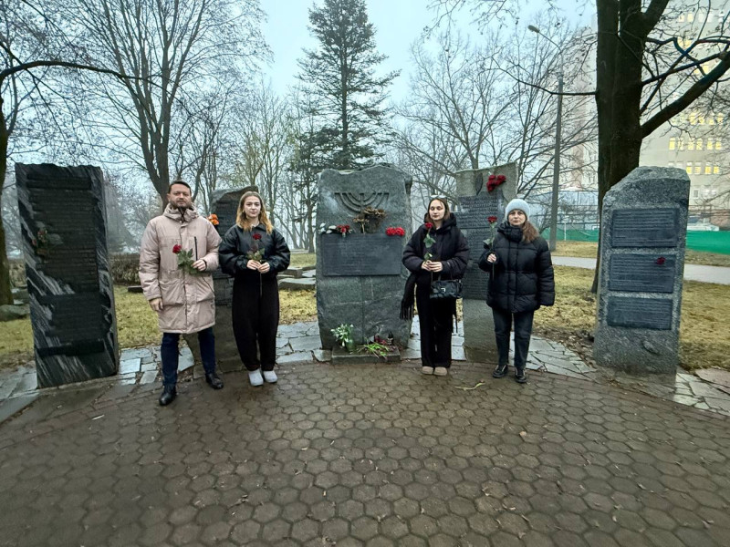 Сотрудники филиала "Минская городская телефонная сеть" РУП "Белтелеком" почтили память жертв геноцида возложением цветов в Еврейском мемориальном сквере Печать