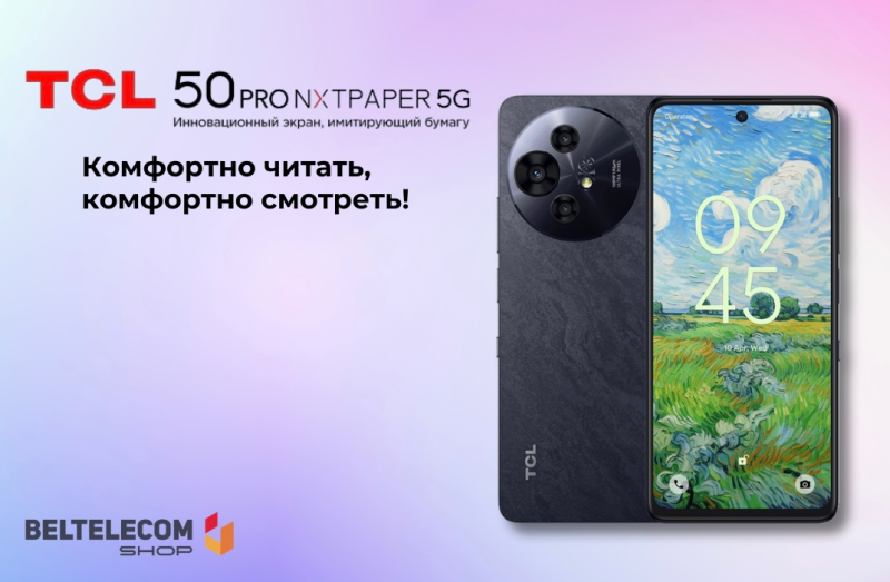 В точках продаж "Белтелеком" и на сайте shop.beltelecom.by стартовали продажи нового смартфона TCL 50 PRO NXTPAPER 5G. Абоненты "Белтелекома" могут стать обладателями новинки на выгодных условиях: рассрочка на 24 месяца без первого взноса. Ежемесячный платеж составит всего 54,2 рубля.