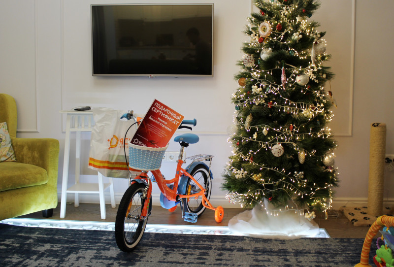 Начальник отдела продвижения услуг филиала «Минская городская телефонная сеть» РУП «Белтелеком» Елена Матиевская вручила велосипед родителям девочки в непринужденной домашней обстановке. Счастливая обладательница подарка спала в кроватке, поэтому в фотосессии дружелюбно согласилась поучаствовать кошка Боня в окружении домочадцев!