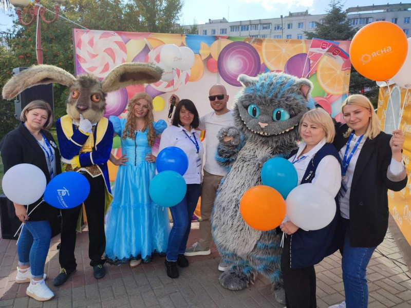 Кроме того, дополнительную атмосферу праздника создавали ведущий и аниматор, которые проводили различные конкурсы, раздавали брендированные сувениры участникам конкурсов, а герои сказки «Алиса в стране чудес» приглашали сфотографироваться возле стилизованной брендом ЯСНА фотозоны!