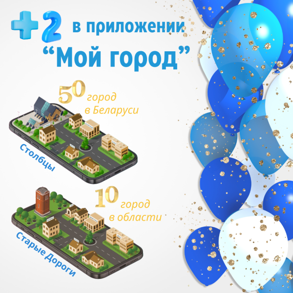 Столбцы стали 50-м юбилейным городом Беларуси, а Старые Дороги - 10-ым юбилейным городом в Минской области, использующими все возможности удобного мобильного помощника, который предоставляет все услуги города и максимальную информацию о них в один клик!