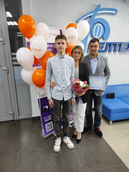 Обладателем титула СТОТЫСЯЧНЫЙ АБОНЕНТ УСЛУГИ ВИДЕОКОНТРОЛЬ ОТ «БЕЛТЕЛЕКОМ» стала семья из Новополоцка Витебской области, оба супруга работают на предприятии ОАО «Нафтан» завод «Полимир» - глава семьи Дащёнок Дмитрий, жена Любовь и сын Степан, учащийся.