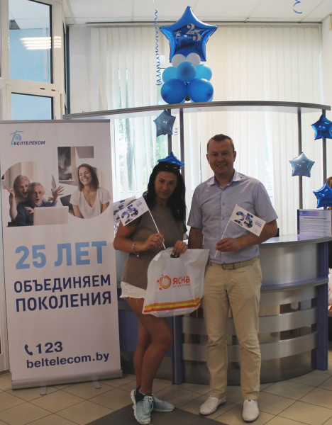 «25 лет - это возраст формирования жизненных целей и задач, возраст активных действий и свершений. Хочется в очередной раз высказать слова уважения всему коллективу и поздравить с круглой датой. Заслуженное доверие, которым пользуется предприятие у абонентов и партнеров, его авторитет, надежность и устойчивое положение — свидетельство высочайшего профессионализма, целеустремленности, энергии, любви к своему делу всех членов коллектива. Спасибо коллективу и конечно отдельная благодарность абонентам за доверие и выбор нашей компании, как поставщика телекоммуникационных услуг. Надеюсь, наше сотрудничество и далее будет плодотворным и успешным. Желаю, чтобы и последующие годы были для Белтелекома годами успешных вложений, полезных дел, стабильности и дальнейшего процветания», - отметил директор филиала Дмитрий Казак.