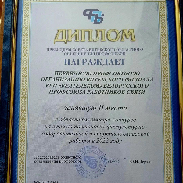 Среди профсоюзных организаций, выходящих на республиканские комитеты отраслевых профсоюзов, первичная профсоюзная организация Витебского филиала РУП “Белтелеком” заняла почетное 2-е место.