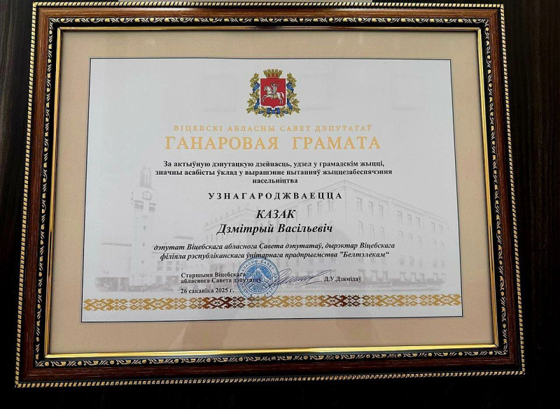 Дмитрий Казак, директор Витебского филиала РУП "Белтелеком", депутат областного Совета депутатов удостоен: