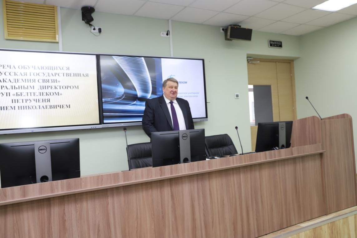 Генеральный директор РУП «Белтелеком» Юрий Петрученя встретился со студентами Белорусской государственной академии связи (БГАС). Он рассказал будущим ИТ-специалистам о перспективах работы в сфере связи и телекоммуникаций, о профессиональных компетенциях, которые потребуются на современном производстве.