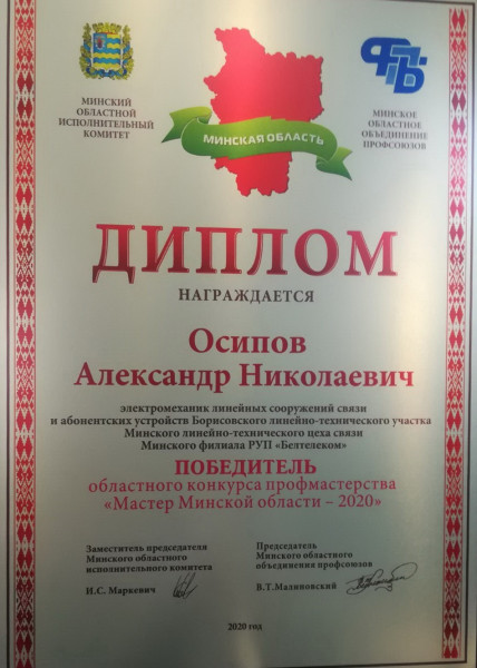 Представители «Белтелекома» стали победителями конкурса «Мастер Минской области» | Белтелеком