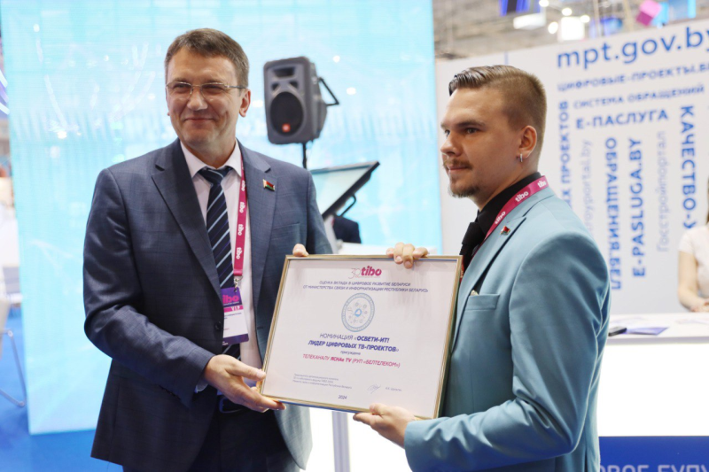 Официальный сайт Министерства связи и информатизации, разработчиком которого является ИРЦ РУП "Белтелеком", занял 1-е место в номинации "Органы государственного управления и власти" XXI Интернет-премии ТИБО. Диплом жюри за разработку сайта moygorod.by также присужден РУП "Белтелеком". Большой радостью для нашей команды стал диплом оргкомитета ТИБО-2024 "За лучший стенд".