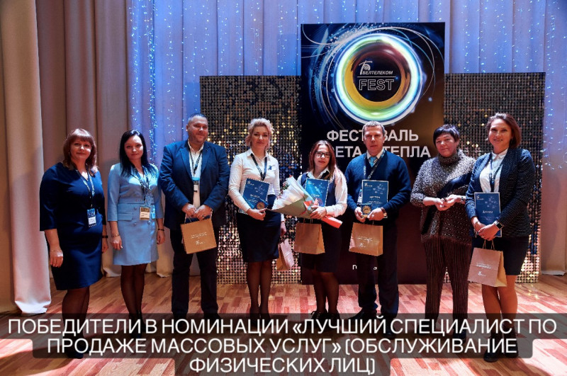 По итогам конкурса в номинации «Лучший специалист по продаже массовых услуг» победу одержала Мария Гордиенко (Гродненский филиал), второе место занял Алексей Бонцевич (Брестский филиал), третье место досталось Татьяне Соловьевой (Минский филиал).