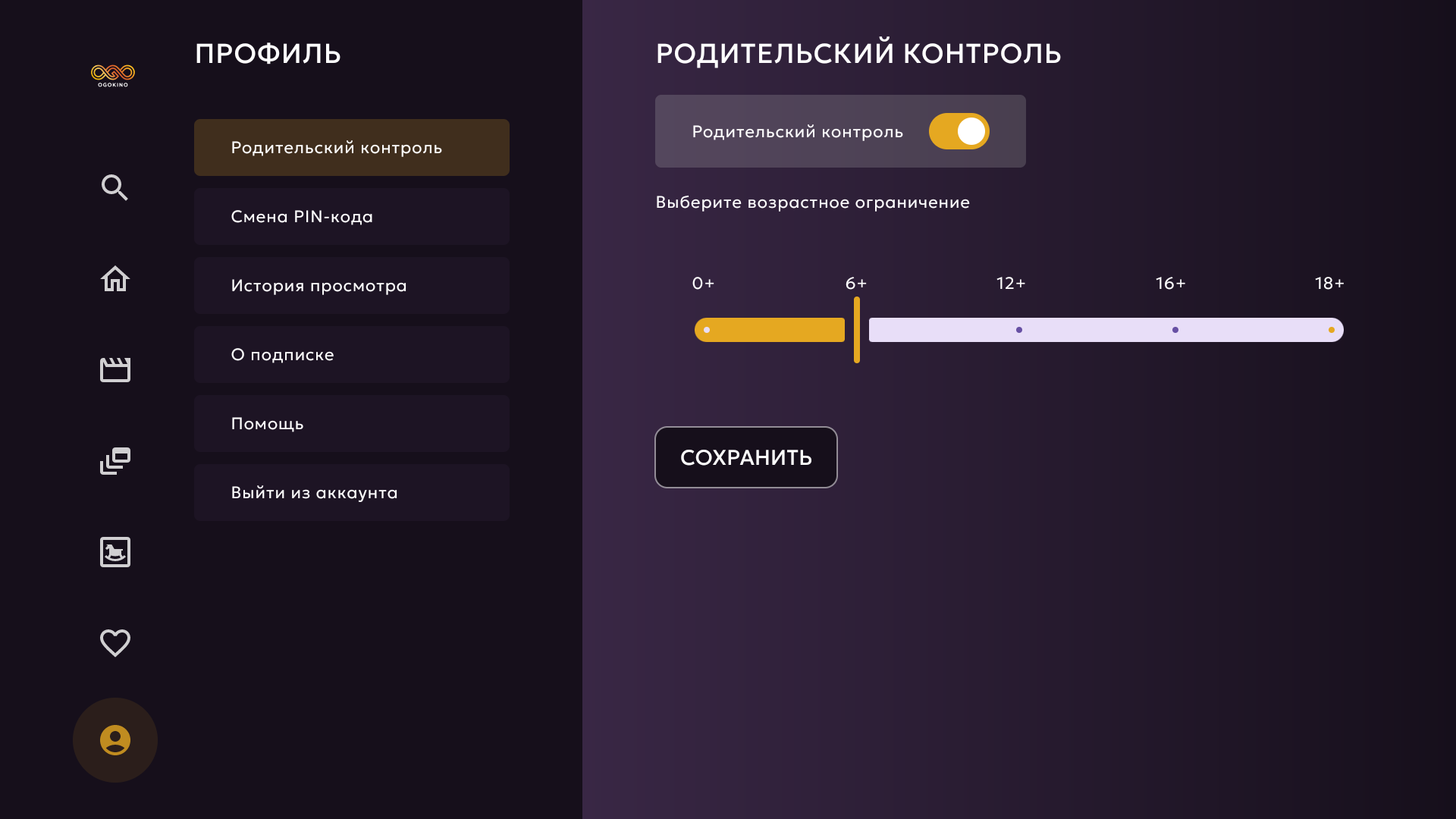 Установка приложения через Google Play.Запускаем приложение Google Play, в строке поиска вводим “Ого!Кино” [1].В результатах поиска выбираем приложение “Ого!Кино”, нажимаем на пульте дистанционного управления кнопку “Ок”. Просматриваем информацию о приложении, производим установку приложения, нажав на кнопку “Установить”.После успешной установки приложения появится кнопка “Открыть”.Авторизация абонента в приложенииДля авторизации в приложении “Ого!Кино” требуется ввести “Логин” и “Пароль” на странице авторизации приложения. [2]Описание приложенияКонтент приложения “Ого!Кино” включает в себя художественные и документальные фильмы, сериалы, детский контент и прочие видеоматериалы онлайн-кинотеатров Иви, Амедиатека, START и Wink. Количество и перечень онлайн-кинотеатров, входящих в состав приложения, может изменяться.После запуска приложения абоненту доступен контент на “Главной странице”, странице “Фильмы”, странице “Сериалы”, странице “Детям”.Перемещаясь по разделам приложения “Ого!Кино”, абонент осуществляет фильтрацию контента “Фильмы”, “Сериалы” и т.д.Для упрощения поиска необходимого контента, доступен выбор определенного жанра.На странице “Детям” отображается контент с возрастным ограничением 12+, в случае, если не задано дополнительное ограничение в настройках родительского контроля.Родительский контрольФункционал “Родительский контроль” реализует ограничения отображения и доступа к контенту, согласно настройке возрастного рейтинга, выставляемого пользователем. Пароль по умолчанию “0000”.Для изменения возрастного ограничения необходимо перейти в “Профиль” - “Родительский контроль”, включить функционал, переместить “ползунок” на необходимый возраст, сохранить настройку.Приложение “Ого!Кино” имеет простой и понятный интерфейс управления. Специалисты служб технической поддержки окажут необходимую помощь и консультацию в случае возникновения трудностей.Информация для службы технической и консультационной поддержки 123 находится в разделе “Помощь”. [1] Приложение «Ого!Кино» будет доступно в магазине приложений GooglePlay после прохождения тестирования и публикации со стороны Google. На приставках РУП «Белтелеком» DV 9135 приложение будет установлено через систему управления РУП «Белтелеком»[2] Услугу можно подключить в «Кабинете пользователя», приложении «Мой Белтелеком» или в офисах продаж Печать