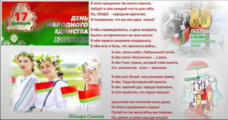 Дорогие коллеги и друзья!В этом году мы с гордостью отметили День народного единства, который стал символом нашей истории, культуры и сплоченности. В преддверии праздника сотрудники РУП «Белтелеком» активно участвовали в различных мероприятиях, которые укрепили наше единство и напомнили о важности мира и суверенитета нашей страны.Молодые работники головного подразделения компании первыми увидели кинодилогию «Наши символы», вышедшую в прокат ко Дню народного единства. Фильм рассказывает о значении наших государственных символов – герба и флага, оставив яркие впечатления у зрителей. Коллектив Гродненского филиала посетили кинотеатр «Красная звезда» для просмотра кинодилогии, которая погрузила сотрудников в историю и традиции нашей страны.Празднование Дня народного единства в Гродно началось с забега в Пышках, который объединил участников из различных организаций и предприятий. Также директор Гродненского филиала Александр Никадон и его команда возложили цветы к братской могиле советских воинов и приняли участие в торжественном митинге в мемориальном комплексе "Курган Славы", отдав дань памяти героизму защитников нашей страны.15 сентября члены первичной организации ОО "Белорусский союз женщин" филиала "Радио, телевидение и связь" приняли участие в районной культурно-патриотической акции «Единство. Развитие. Независимость», прошедшей в Белорусском государственном молодежном театре.Важным событием стало участие сотрудников головного подразделения в общественно-политическом марафоне «17 граней Единства», организованном РОО "Белая Русь". Молодежь Витебского филиала РУП "Белтелеком" провела на предприятии викторину ко Дню народного единства! В Глубокском историко-этнографическом музее прошел исторический час "Под небом единым", где молодёжи рассказали о воссоединении белорусских земель в 1939 году. В честь Дня народного единства работники Жлобинского ЗУЭС Гомельского филиала приняли участие в спортивно-массовом мероприятии - велопробеге «В Единстве Сила!»17 сентября сотрудники Брестского филиала приняли участие в торжественной церемонии возложения цветов к Братской могиле, а также с гордостью приняли участие в республиканском автопробеге, приуроченном к Дню народного единства. Работники Барановичского ЗУЭС вместе с жителями и гостями города и района почтили память защитников и мирных жителей, погибших в годы Великой Отечественной войны, возложив цветы у Вечного огня в г. Барановичи и к братской могиле в аг. Русино.Сотрудники головного подразделения и Могилевского УЭС посетили гала - концерт "Единством сильны" на площади Единства. Специальным гостем программы стала белорусская певица Гюнешь.17 сентября во Дворце Спорта г. Минска прошел форум патриотических сил, приуроченный ко Дню народного единства. Это масштабное мероприятие собрало представителей различных организаций и партий, объединенных общей целью – укрепление патриотизма и единства среди граждан. В форуме приняли участие сотрудники "Белтелекома" с разных уголком нашей страны.Мы приглашаем всех принять участие в челлендже #даБеларусізКаханнем! Выставляйте на своей открытой странице Instagram красивое семейное фото, ставьте хэштег #даБеларусізКаханнем и отмечайте нас @profcom_beltelecom. Розыгрыш призов состоится 28 сентября. Давайте соберем альбом зам
