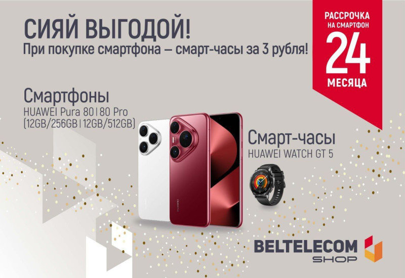 Цяпер пры куплі смартфона Huawei Pura 80 або Pura 80 Pro ў BeltelecomShop смарт-гадзіны Huawei Watch GT 5-Усяго за 3 рублі!