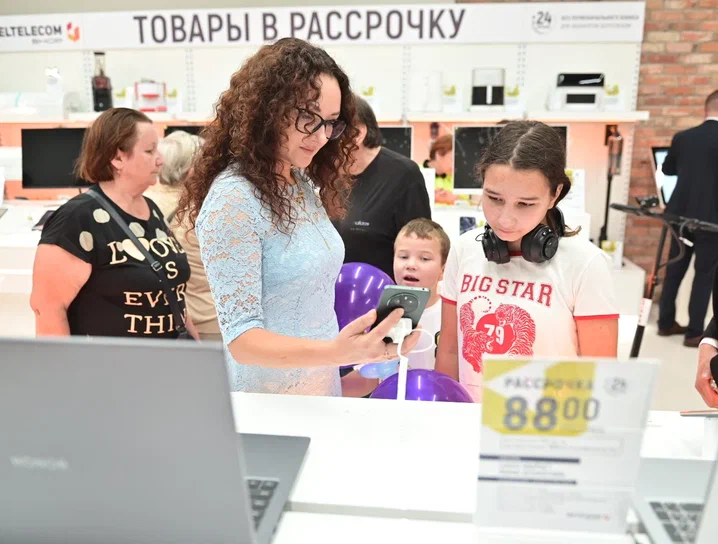 – Приятно быть первым покупателем. Мы у «Белтелеком» совершаем уже не первую покупку, – поделилась собеседница. – Покупали дочке «Алису», робот-пылесос – это наш хороший помощник, и еще два телевизора взяли. Очень радует разнообразие всего, считаю, что ассортимент просто великолепный. И условия хорошие: можно взять сразу несколько товаров, сразу ими пользоваться, постепенно выплачивая стоимость. Сегодня мы пришли сюда целенаправленно. Хотим обновить бабушке стиральную машину. Со мной пришли дети, обратили внимание на телефоны. Пока присматриваемся. Комфортно здесь. Сегодня еще и праздничная атмосфера. Кстати, раньше мы  пользовались услугой через онлайн-магазин. Сейчас же можно посмотреть воочию. Удобно. Хотелось бы пожелать, чтобы компанию всегда сопровождали инновационные идеи и забота о нас – абонентах.